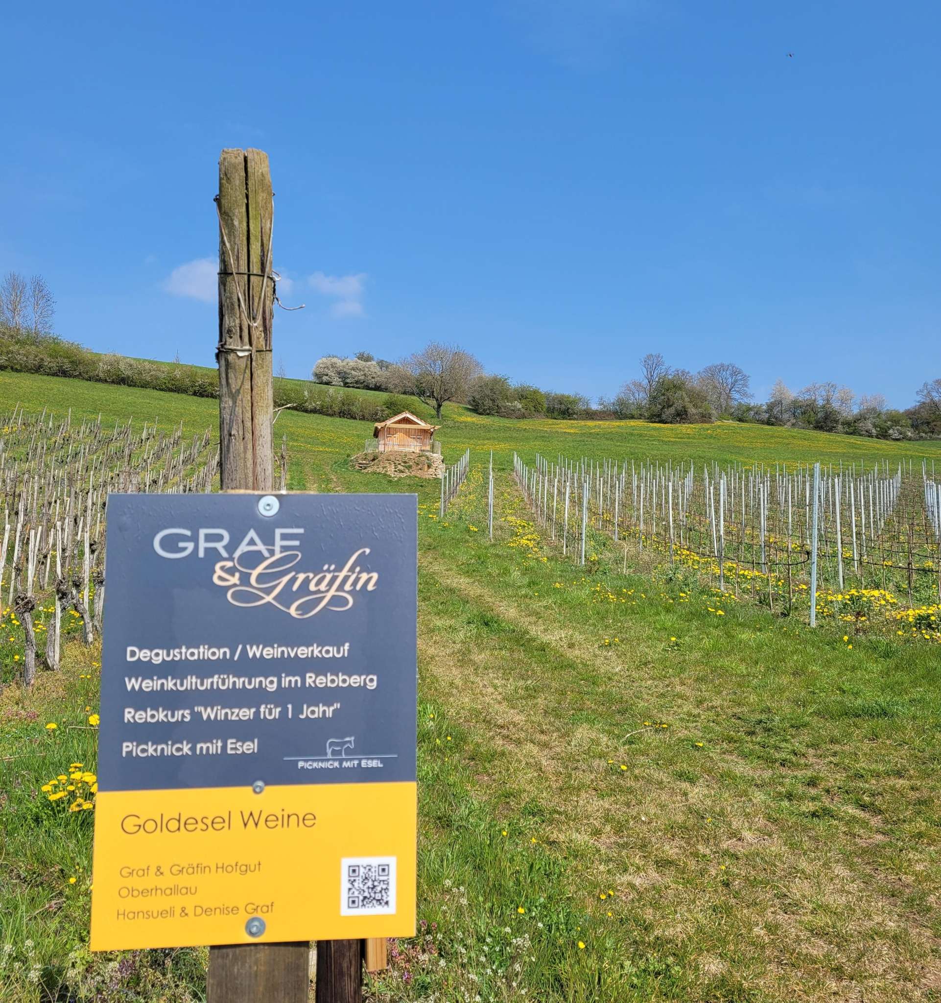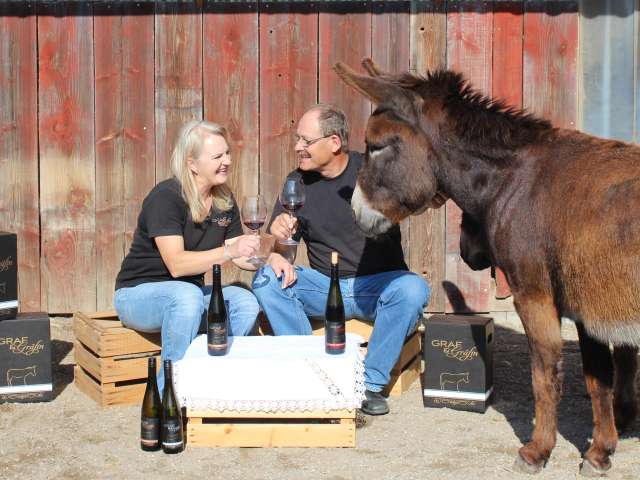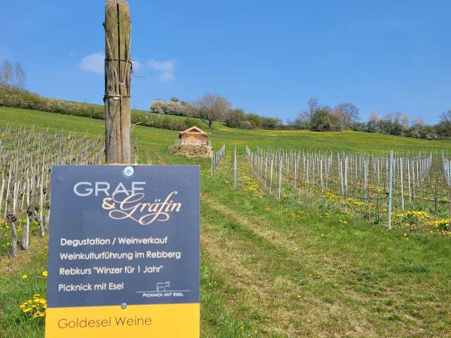 Lernen Sie unsere Weine bei einer Degustation kennen und besuchen Sie uns auf unserem Hofgut. Nebst unseren köstlichen Weinen bieten wir abwechslungsreiche Erlebnisse. Bei «Wein mit Esel» gehen Sie mit uns und unseren Eseln auf einen Spaziergang durch die Oberhallauer Reblandschaft und erfahren allerlei über die Rebarbeiten und besuchen den Sortengarten. Zum Schluss geniessen Sie die Goldeselweine beim Rebhäuschen mit schöner Aussicht. Winzer für ein Jahr Erlernen Sie die Handarbeiten in den Reben und pflegen Sie Ihre eigene Rebreihe über ein ganzes Jahr. Unter fachkundiger Anleitung eignen Sie sich das Winzerhandwerk vom Rebschnitt bis zur Ernte an.