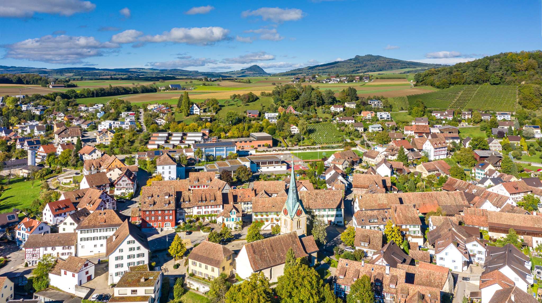 Die Kirche liegt im Dorfkern von Thayngen.