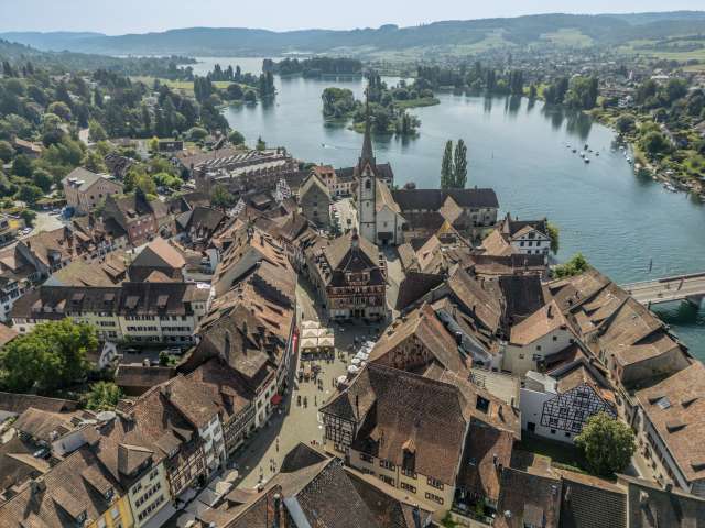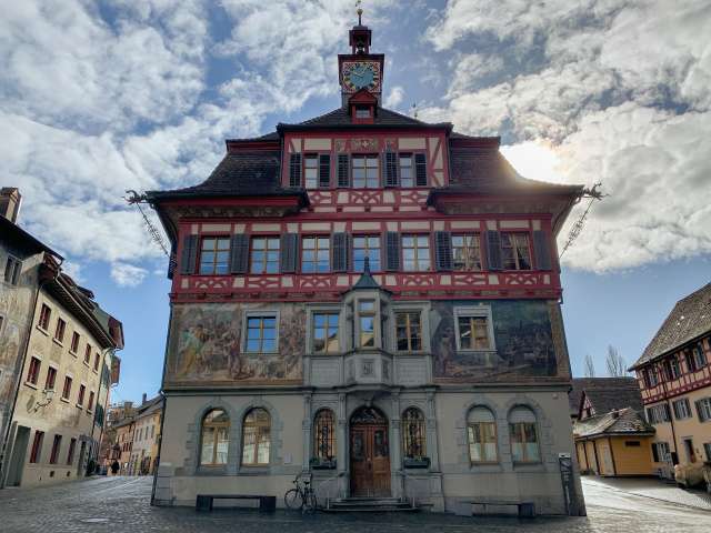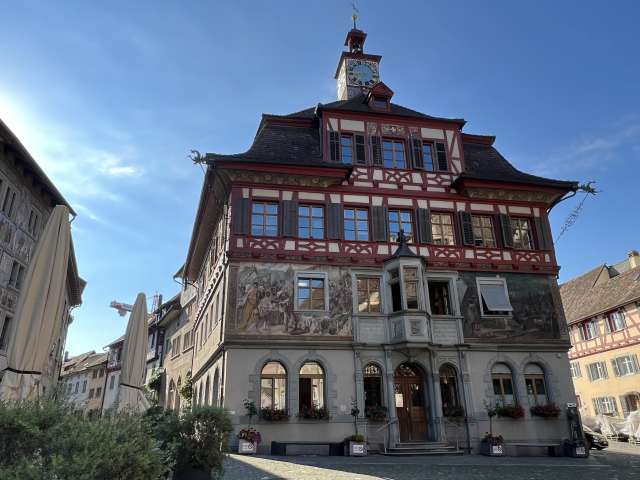 Das prachtvolle Rathaus von Stein am Rhein begeistert mit seinen farbenfrohen Fassadenmalereien und eindrucksvollen Fachwerkdetails. Im Herzen der Altstadt gelegen, zeugt es von der reichen Geschichte und Kultur der malerischen Stadt am Rhein.