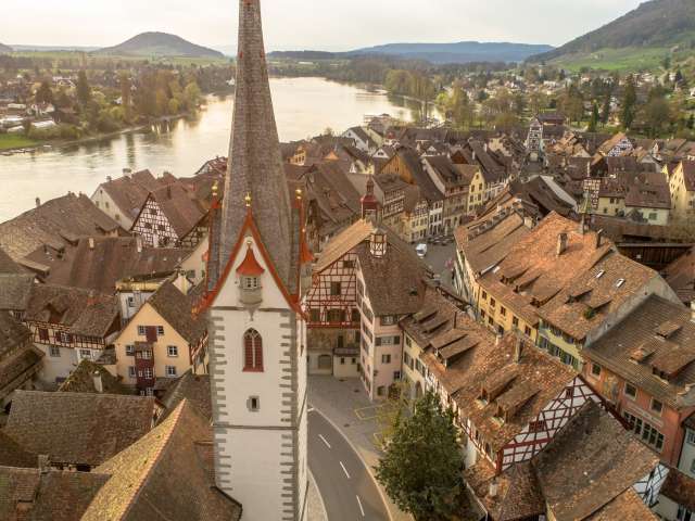 Der Charme dieses mittelalterlichen Städtchens zieht die Besucher sofort in seinen Bann. Hoch über der Altstadt thront die Burg Hohenklingen. Der Aufstieg wird belohnt durch eine atemberaubende Aussicht über den südlichen Hegau, den Bodensee und die Rheinlandschaft.