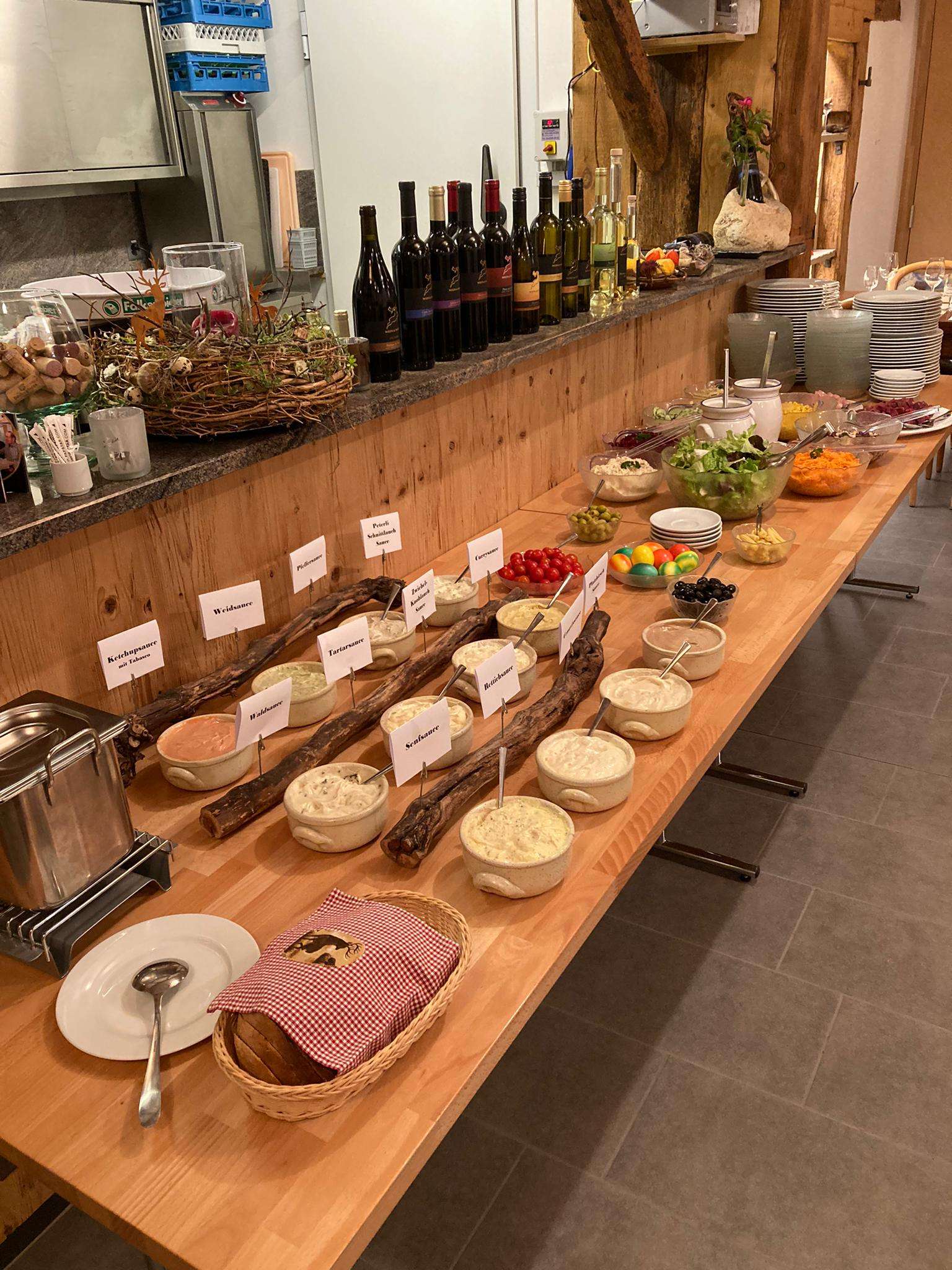 Das absolute Highlight unserer Wildspezialitäten ist das beliebte Fondue Vigneronne begleitet mit einem Glas Wein aus dem Chläggi.