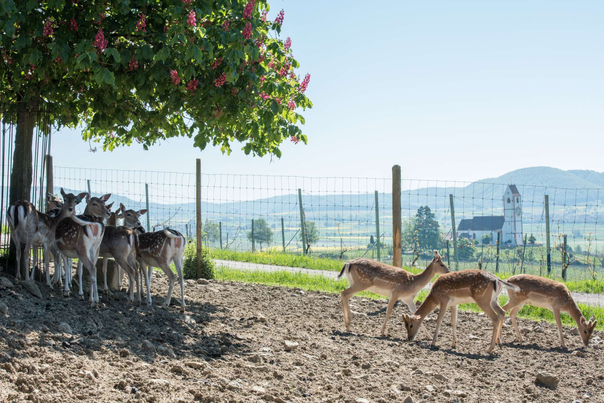 WEIN & WILD Der Name ist Programm. Auf Wunsch führen wir gerne eine Degustation unserer Weine oder einen Rebspaziergang mit Besuch der Hirsche durch.