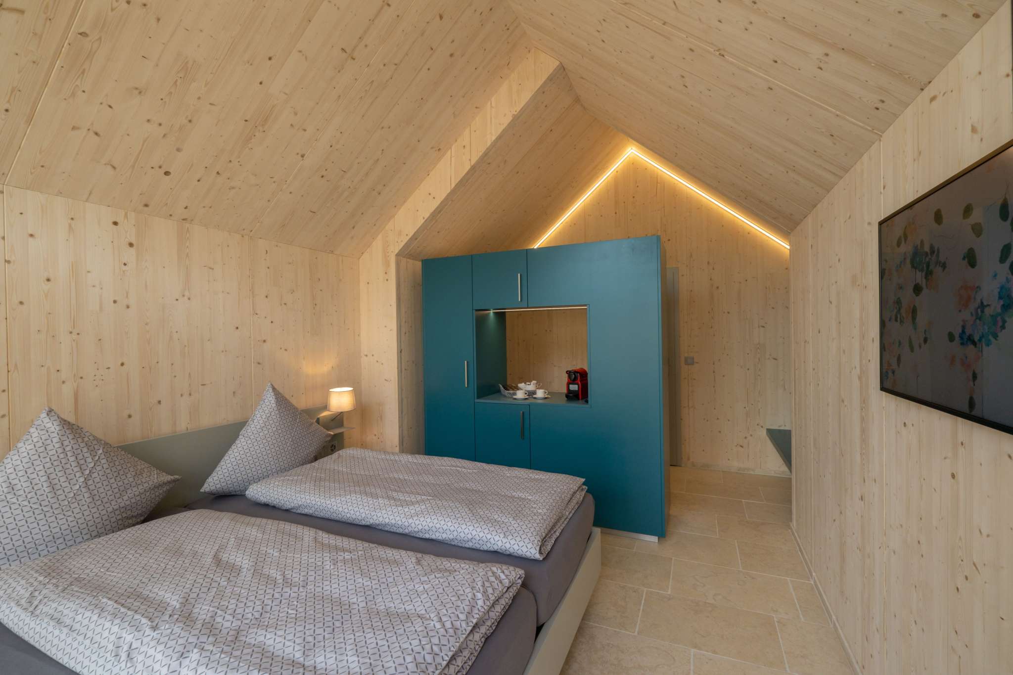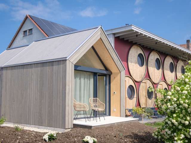 Wir bieten als weltweit einziges Hotel, den Gästen die Möglichkeit, in alten Fässern von Mai bis Oktober, in einem unseren neuen Hotel-Fasszimmer mit moderner Einrichtung zu übernachten, oder in einem unserer stylischen Räbhüüsli zu nächtigen.