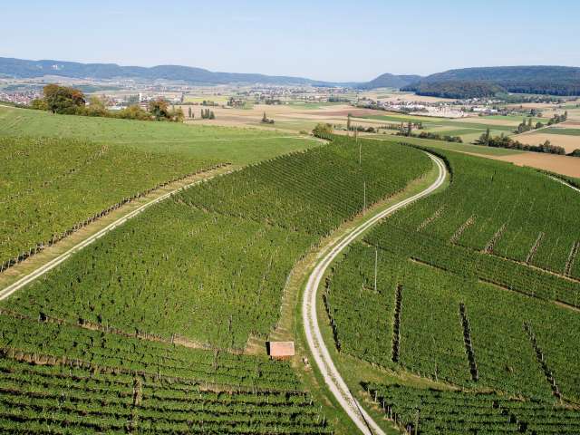Die Reben prägen die Aussicht und das Bild vom Wilchingerberg auf eine besonders schöne Weise. Bestaunen Sie mit Ihren Gästen die Landschaft vom Klettgau.